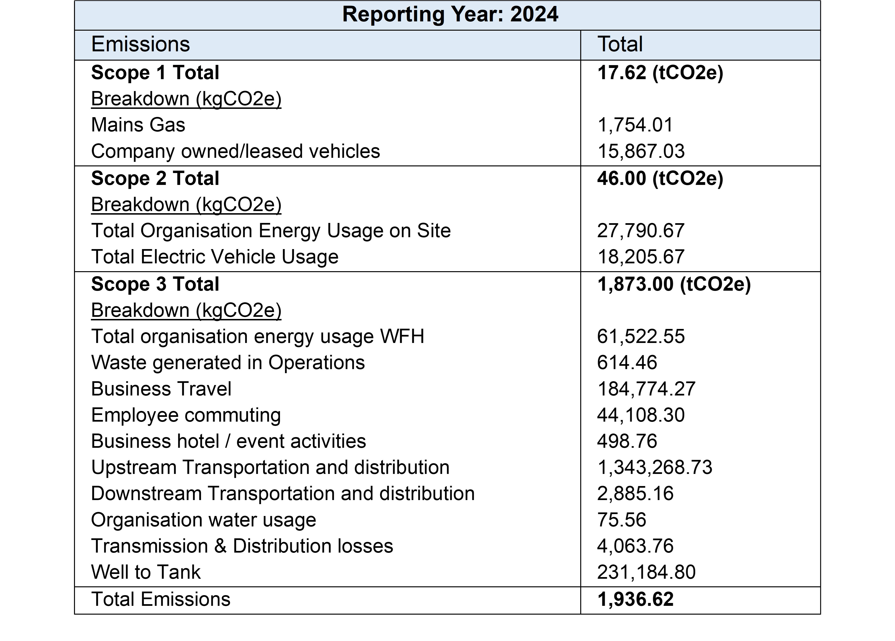 9. As a result, Edgar Brothers proactively engaged with Carbon Neutral Britain to calculate the company's Green House Gas (GHG) emissions in November 2024, with the ambition to measure and offset the total organisation emissions, with a vision to both become Carbon Neutral and to give a robust and detailed baseline, Table 1 refers.