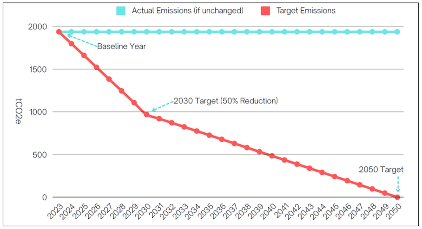 23. This will require a reduction of 7.14% (138.27 tCO2e) per year, as can be seen by the graphical representation in Figure 1.